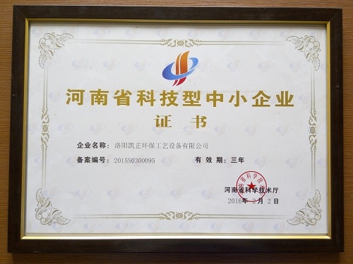 近日,洛陽凱正環(huán)保工藝設備有限公司榮獲“河南省科技中小企業(yè)”“ 科技創(chuàng)新先進企業(yè)”“ 立信示范單位”。