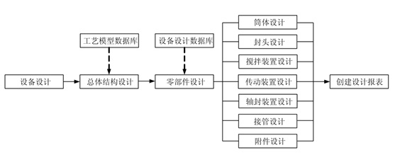 在具體的設計過程中,往往已經積累了大量的圖紙資料,因此,除了整理完善相關工藝數學模型和力學模型外,系統(tǒng)還要構建實例圖形數據庫。實例圖形數據庫及相關功能模塊相當于一個內置的 PDM 系統(tǒng),同一工況下已有的圖紙不必再重新生成,甚至不必重新設計,直接通過有關接口檢索并調用即可,而全新設計的設備也可通過該數據庫調用諸如電機、減速機、攪拌槳葉、機架、聯軸器、密封件、法蘭等標準圖形,實現了設備的模塊化、標準化設計,完成的圖紙又能作為新實例添加到實例設備數據庫中,充分利用設計成果,避免了多次重復設計。
